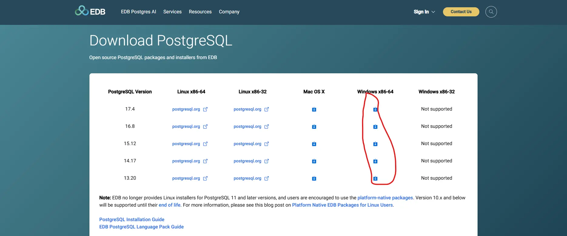 官方下载:https://www.enterprisedb.com/downloads/postgres-postgresql-downloads