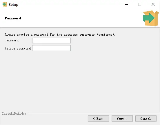 这里需要输入密码了,默认账号名字为:postgre,然后next