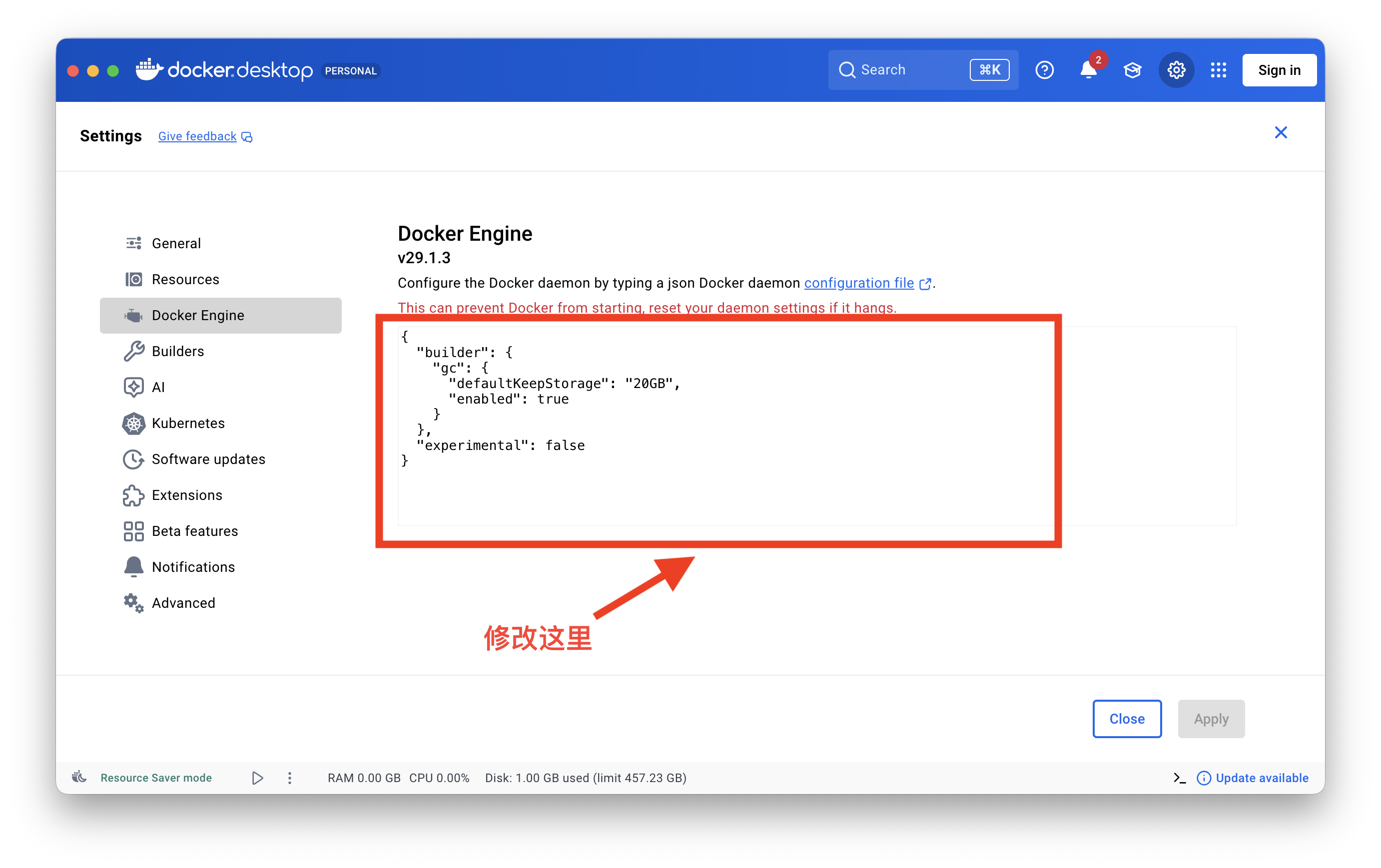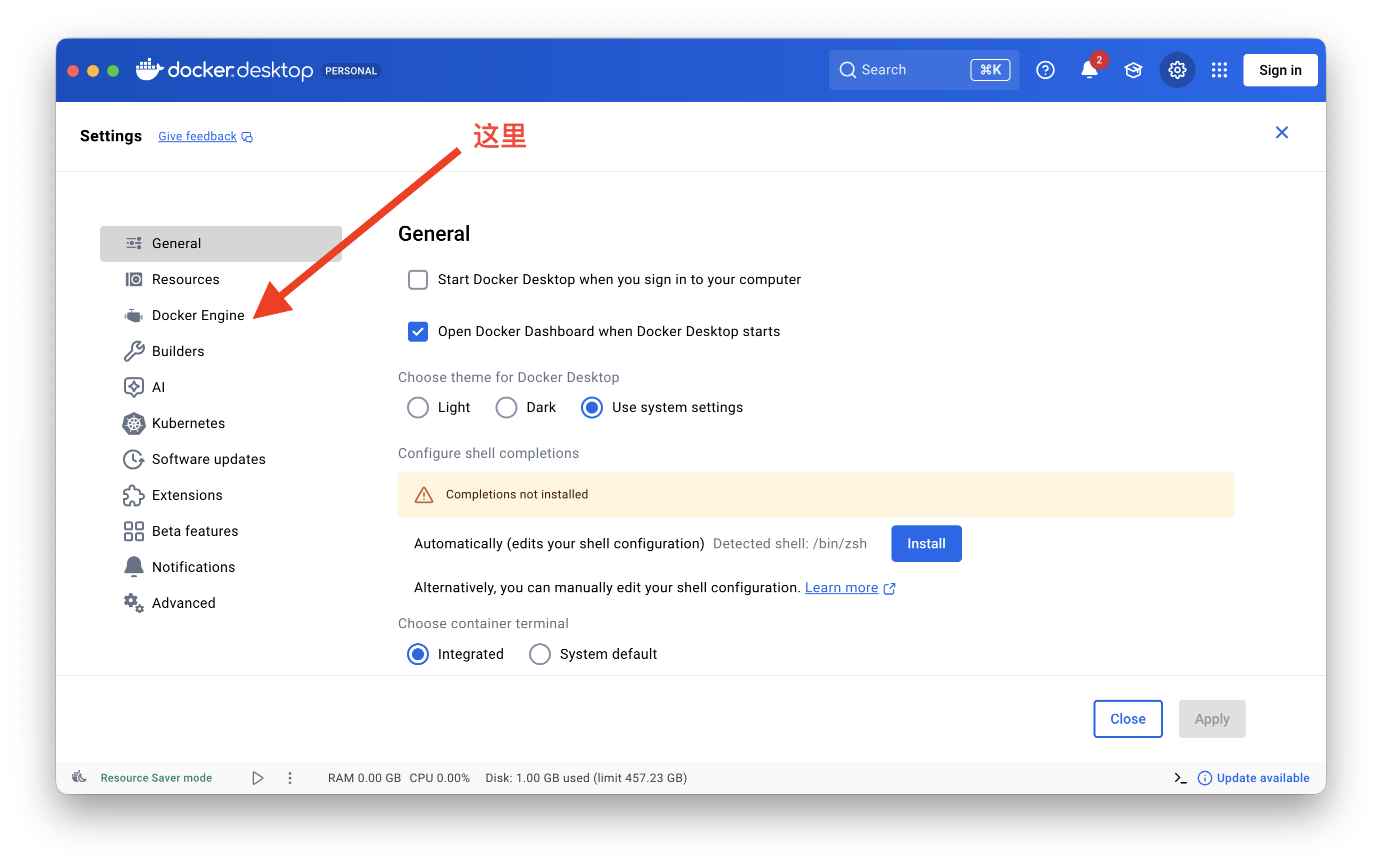 2、进入 Docker Engine 选项卡。